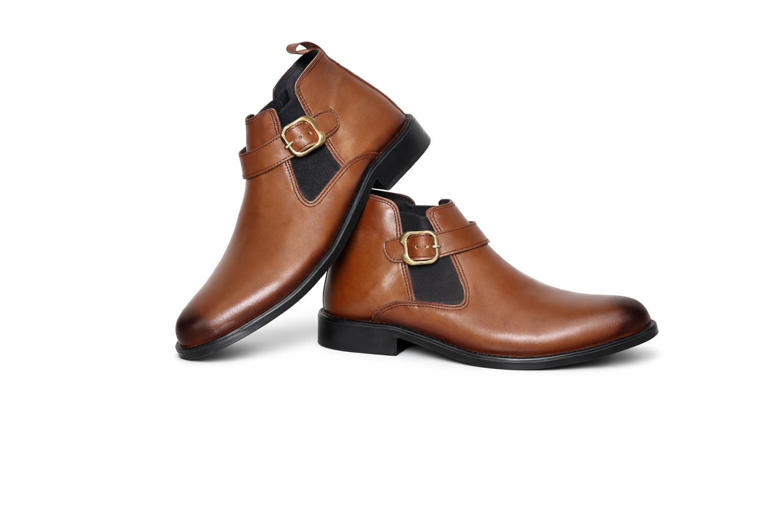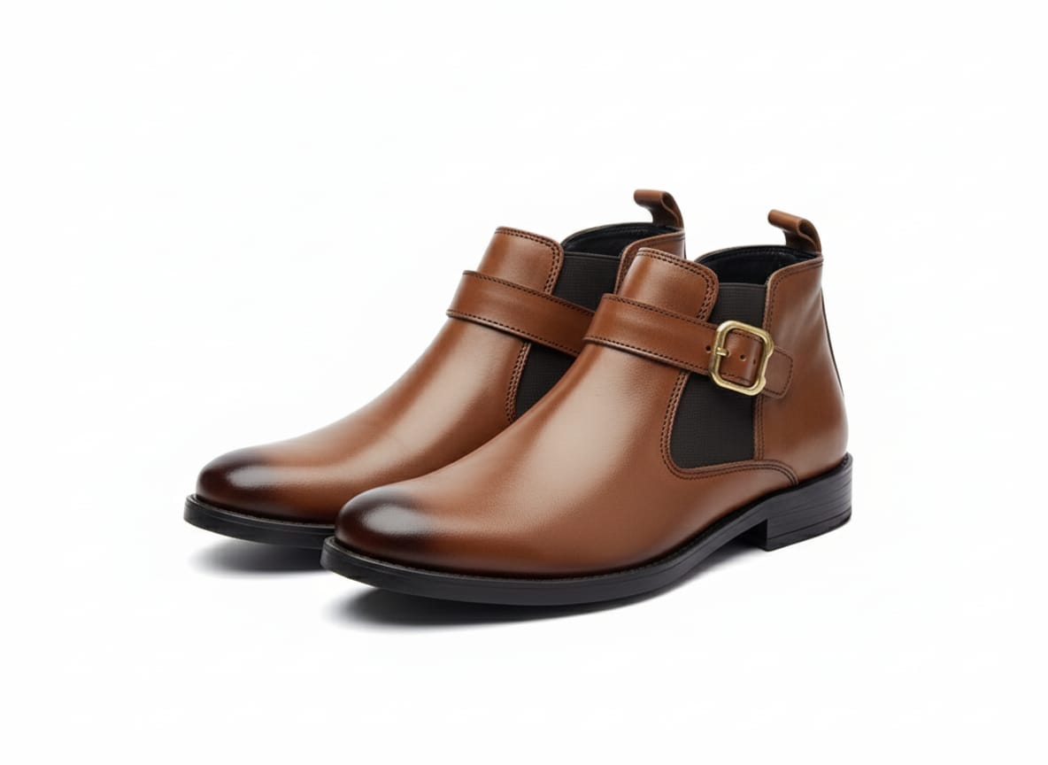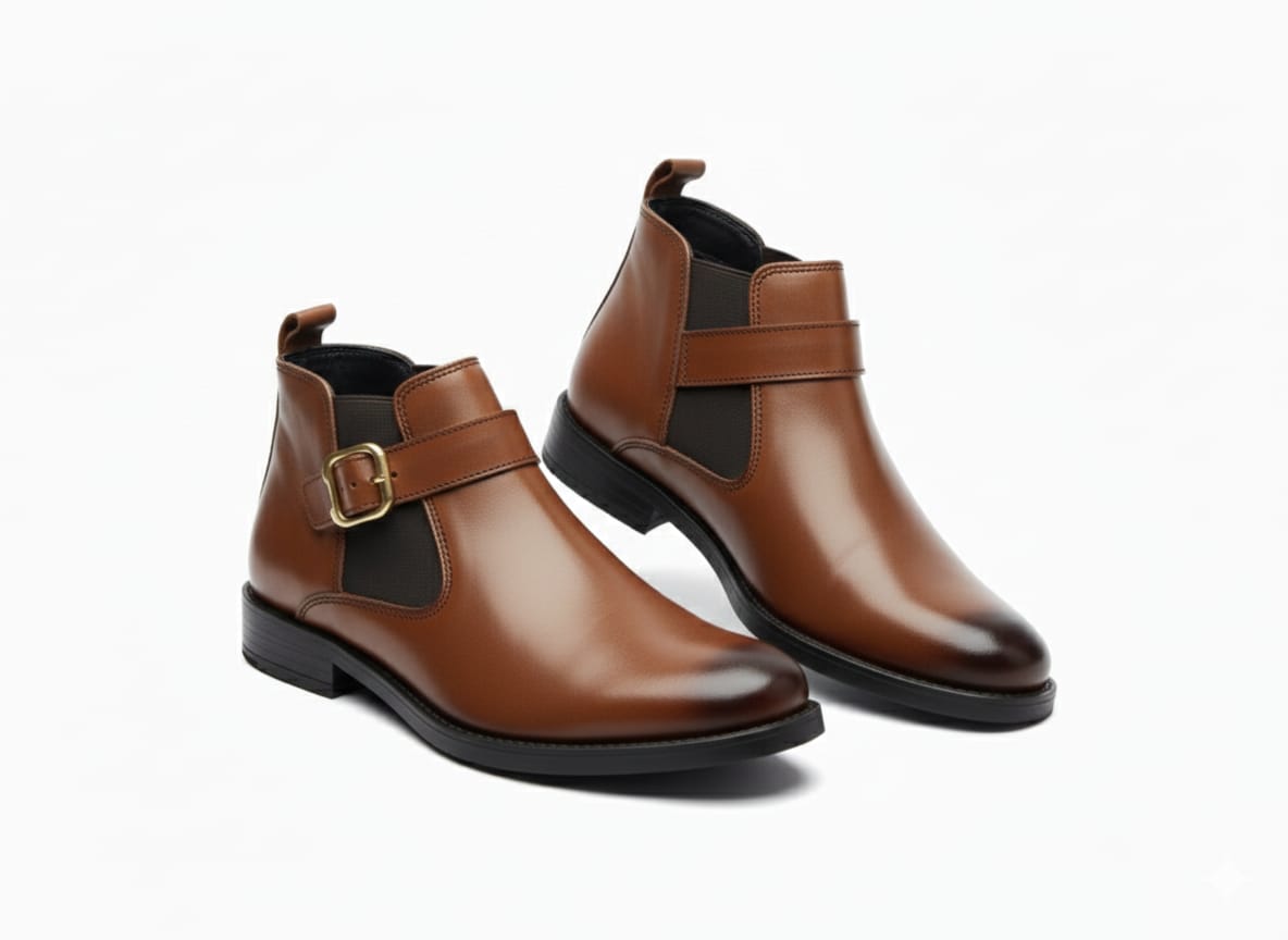 Elevate your look with these sleek brown ankle boots, featuring a smooth finish and a modern buckle strap for a refined edge. Designed for comfort and durability, they’re perfect for office wear, smart casual outfits, and evening occasions.
