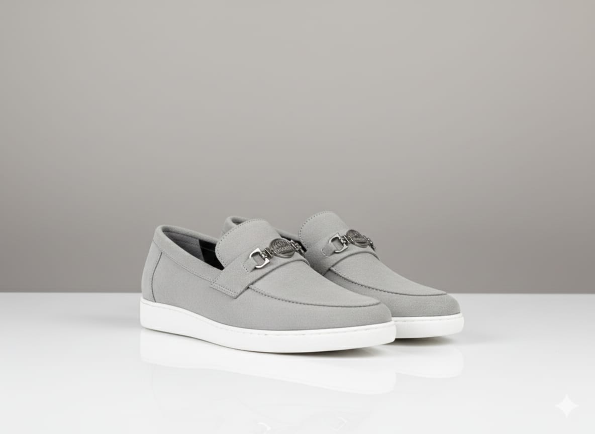 Minimal, modern, and made for everyday comfort. These grey slip-on loafers feature a smooth finish with a lightweight white sole for a sharp, contemporary look. Easy to wear and easy to style, they’re ideal for office wear or smart casual outfits.